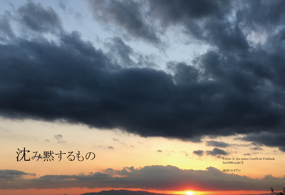 - 人生初の同人誌。使った写真は、旅行で撮影した某所の夕日です。元々のタイトルは「沈黙の空」でしたが、「黙する」に「目する」の意味をもたせたくて、このタイトルになりました。