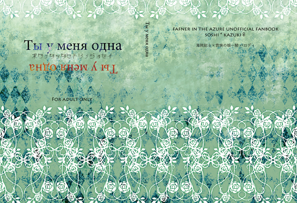 - 海賊パロをイメージしてゴシック風に。なんとなくロシア語にはまっていた頃なので、読み辛いタイトルをつけました。マットPPのカバーは柔らかな手触りで、西洋の御伽噺チックな雰囲気に合っていたかなと思います。素材をめいっぱい使っている…