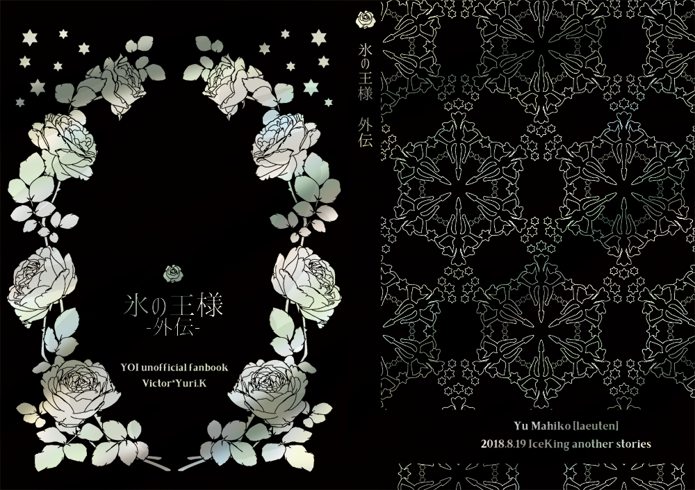 - 黒い表紙にタイトルを銀色、イラストをスミ印刷にしました。「氷の王様と雪の国のモニカ」の黒バージョンです。これも光の反射で背景イラストが浮き出ます。ファンタスの特徴としては、気をつけないと指紋がペタペタついてしまうことです。取扱いに要注意。